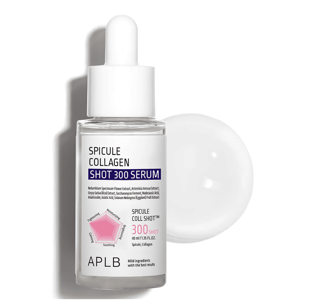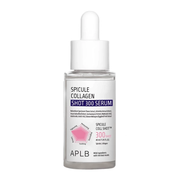 APLB Spicule Collagen Shot 300 Serum активно работает в глубоких слоях эпидермиса, заметно улучшает текстуру кожи, разглаживает морщины и подтягивает овал лица.