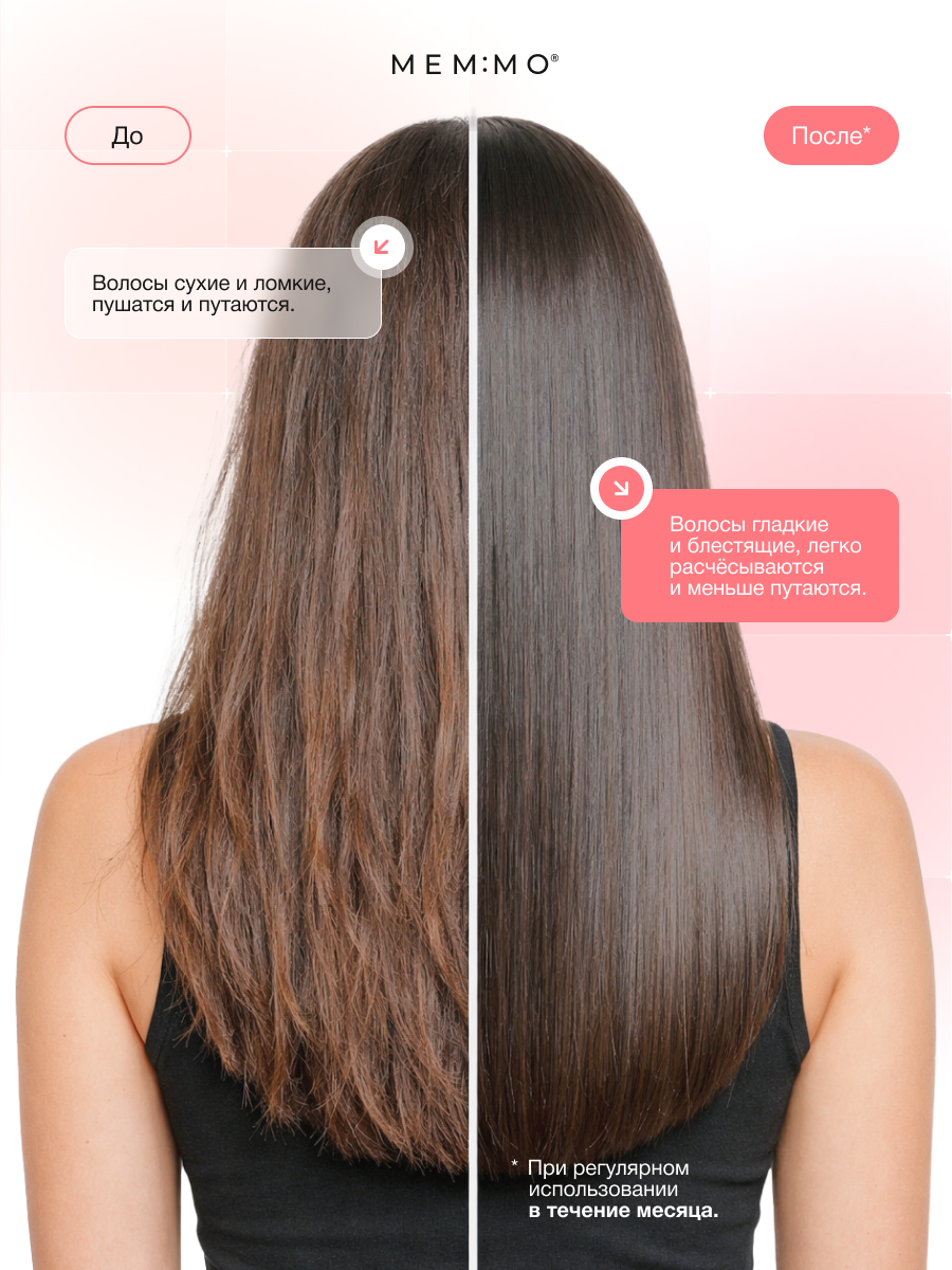 • Волосы: мягкость, гладкость, блеск, более аккуратный вид по длине.